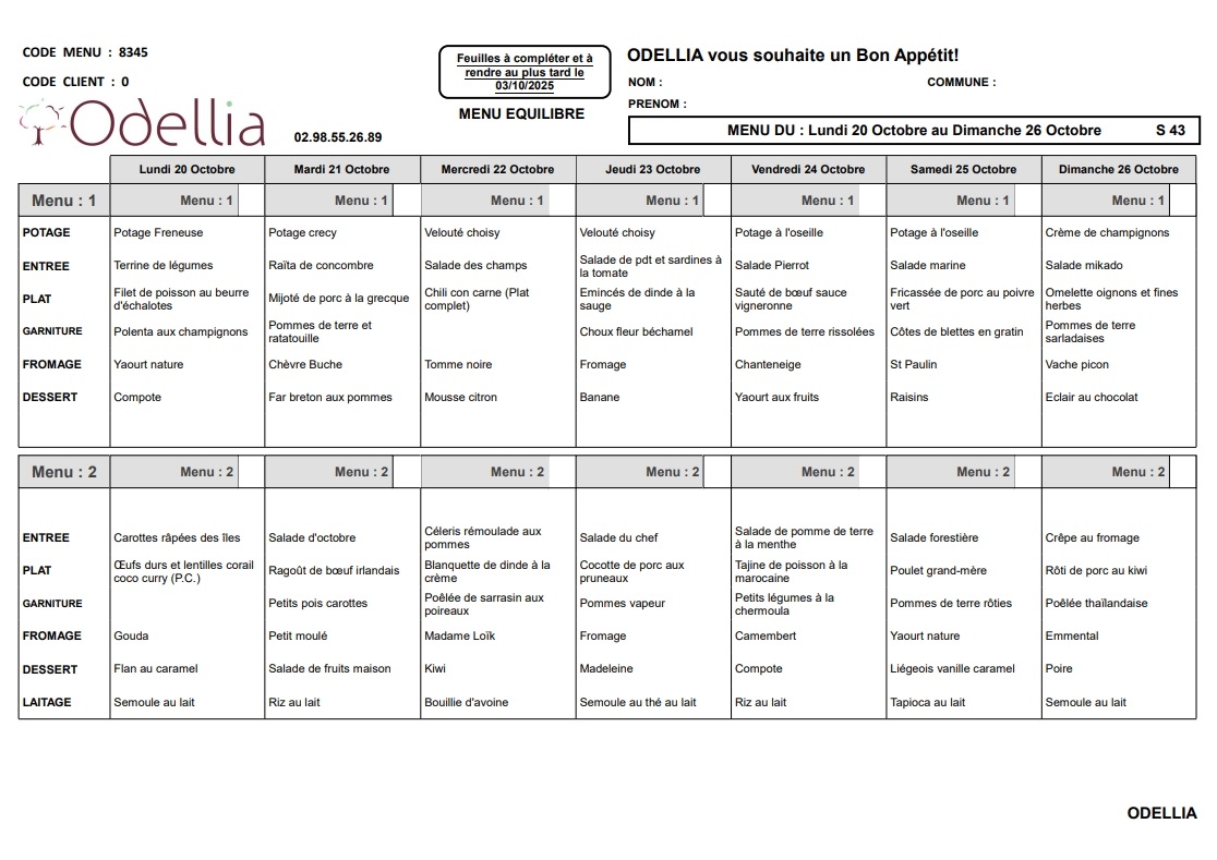 Semaine du lundi 20 octobre au dimanche 26 octobre 2025