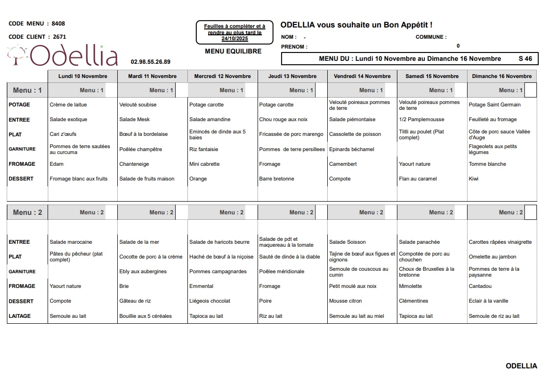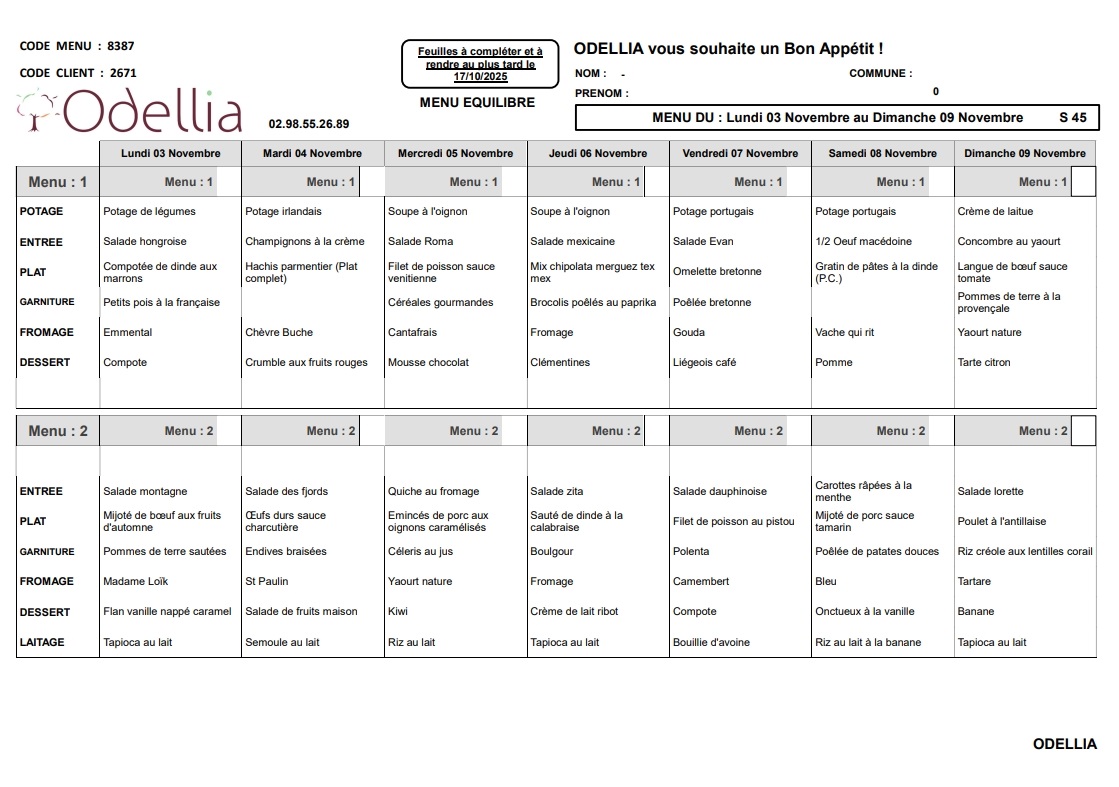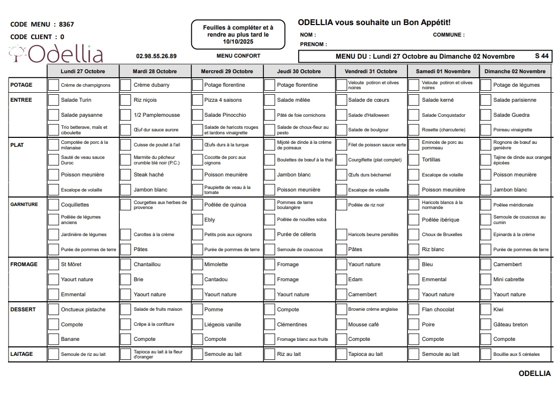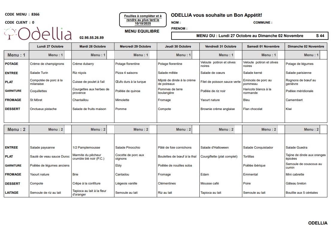 Semaine du lundi 27 octobre au dimanche 2 novembre 2025