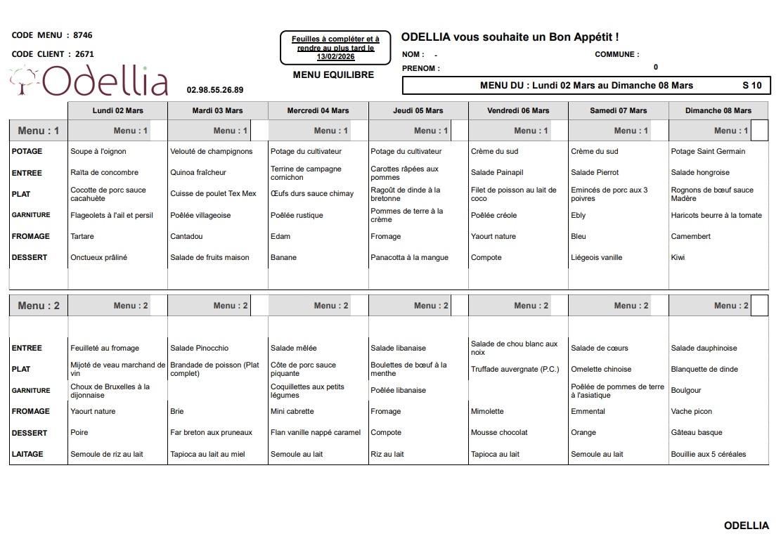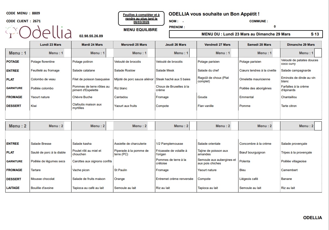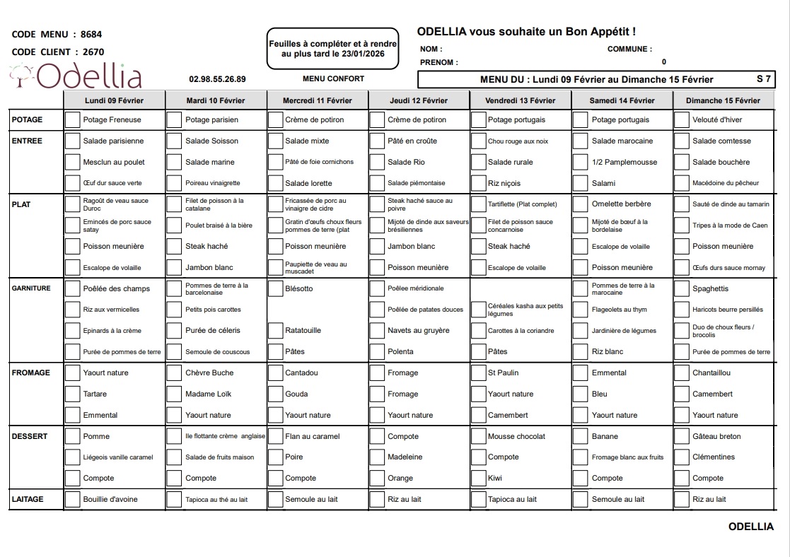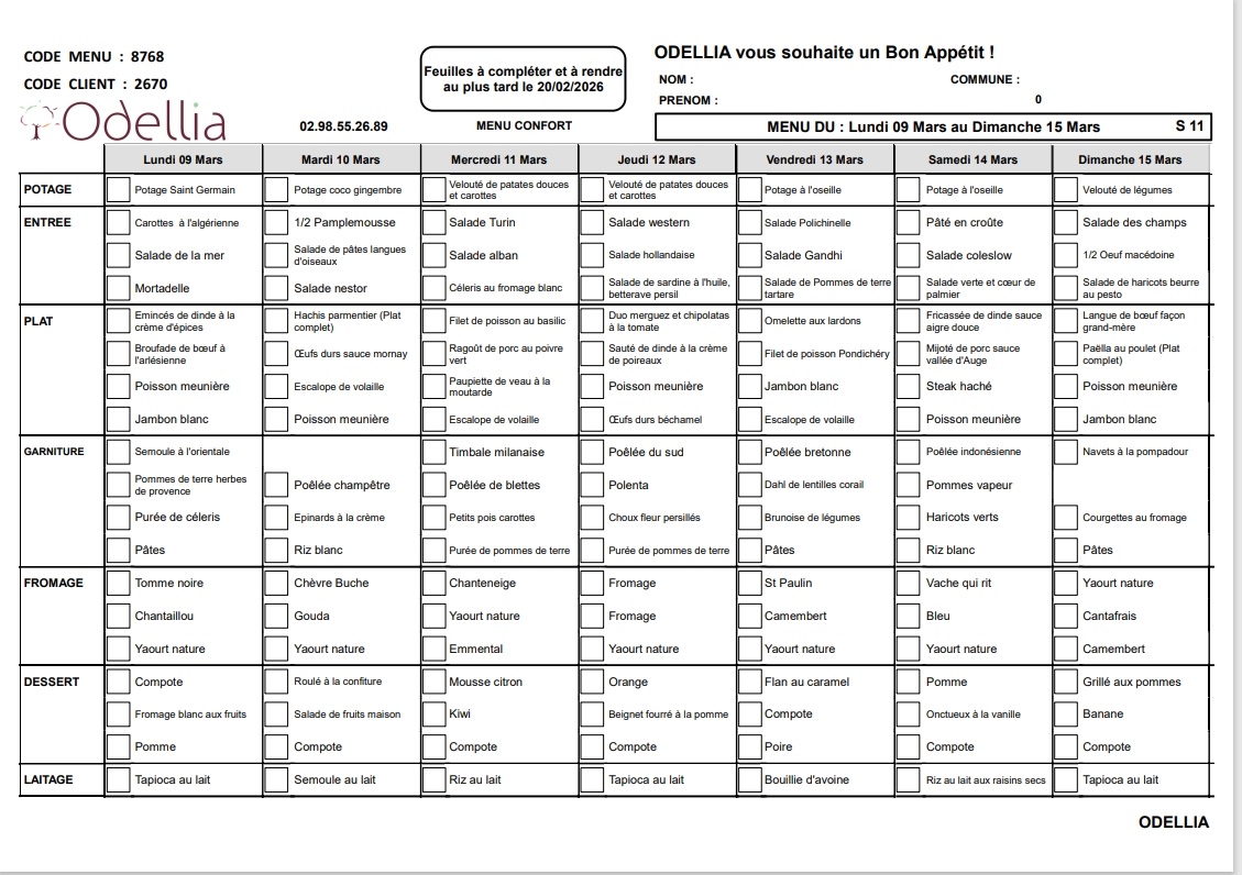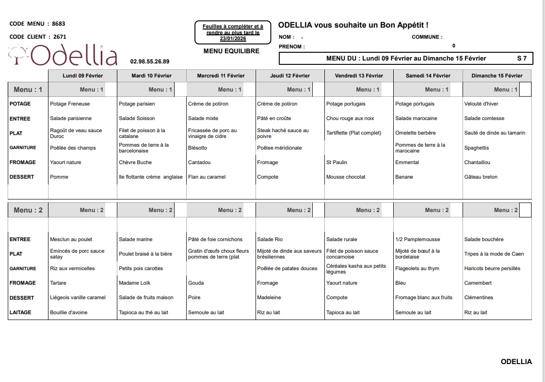 9:00– 18:00 pour les repas du mercredi et jeudi