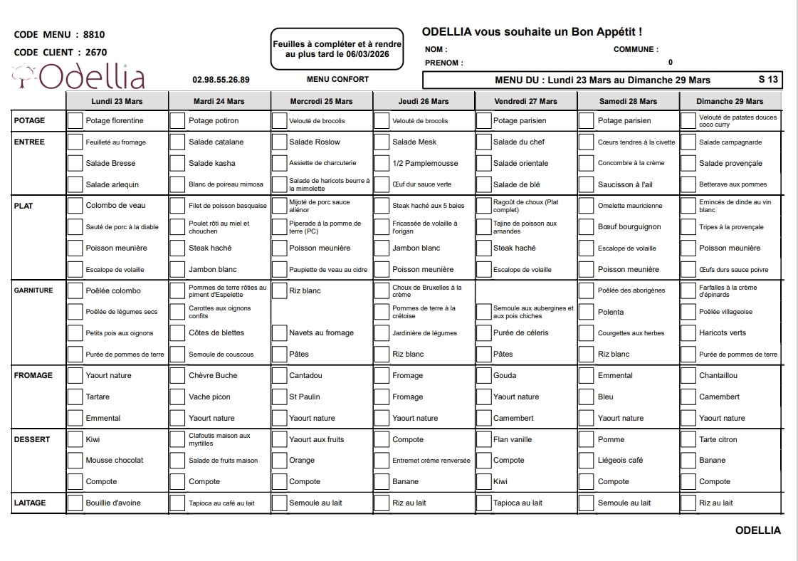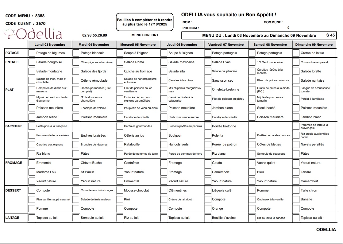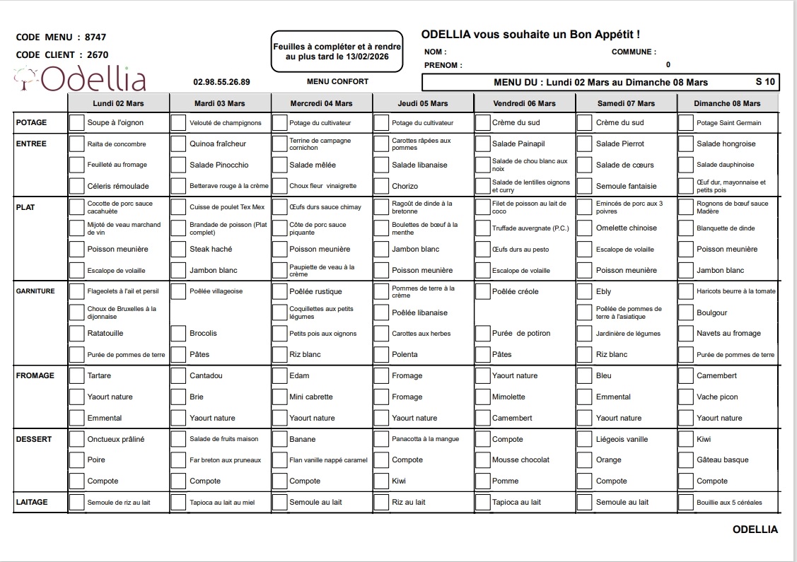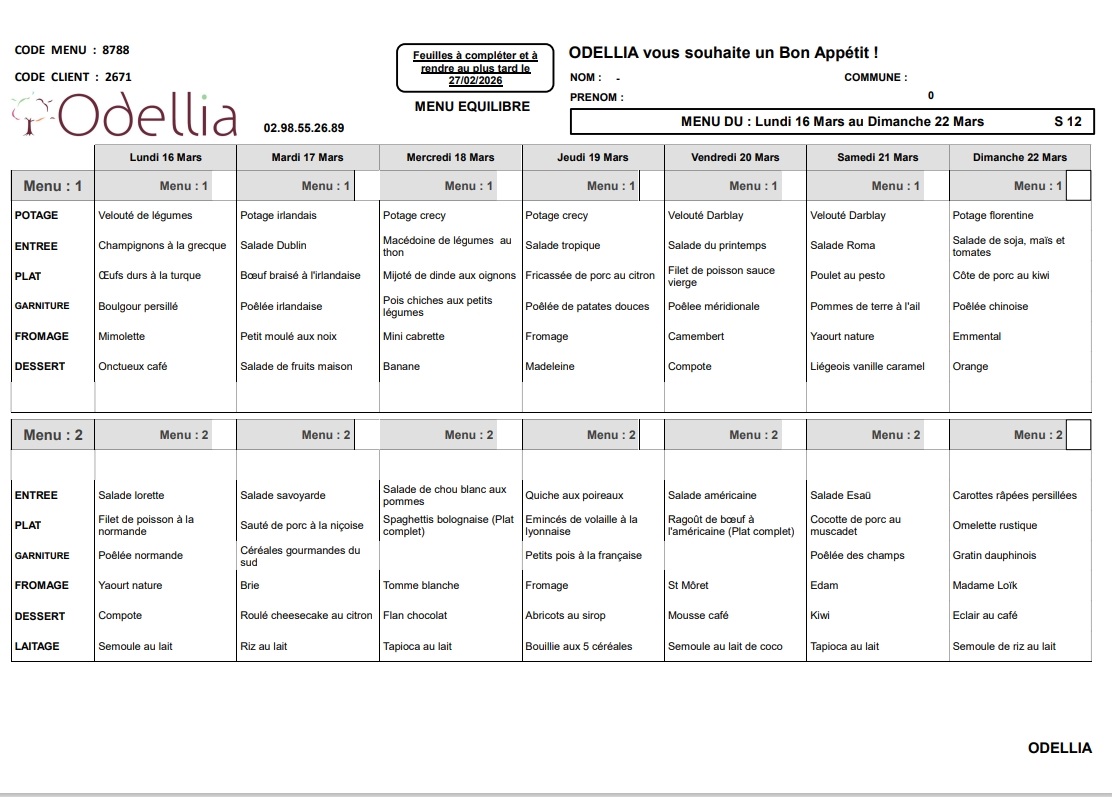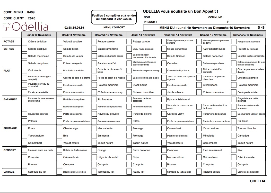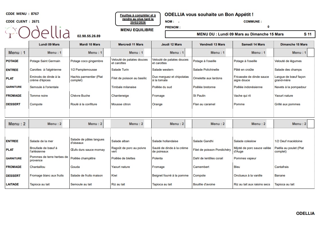 9:00– 18:00 pour les repas du mercredi et jeudi